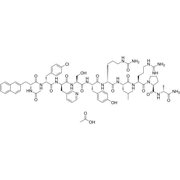 Cetrorelix (CAS 120287-85-6) is a selective GnRH antagonist that inhibits the luteinizing hormone surge during ovarian stimulation. Manufactured under GMP standards, available in bulk and retail quantities. For laboratory research use only.?If you need to place an order or inquire about wholesale product prices, specifications and uses, please contact our staff? Original price was: $21.00.$18.00Current price is: $18.00.Cetrorelix Acetate (CAS 145672-81-7) – Purity 99.92% | GMP Factory