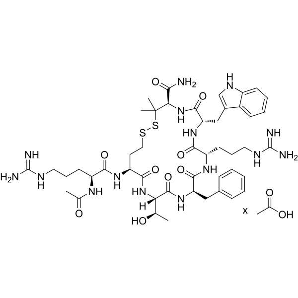 Overall, Filimelnotide acetate provides researchers with a precise and reliable agent to explore the roles of melanocortin receptors in both central nervous system (CNS) and peripheral endocrine signaling.